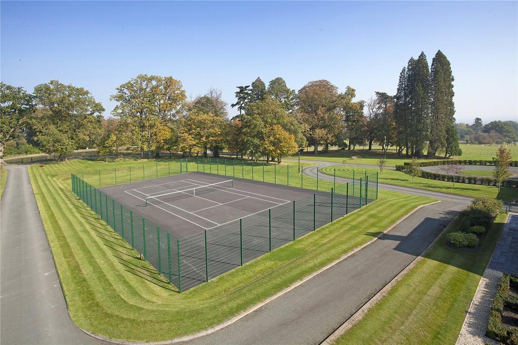 Nestled within approximately 47 acres of picturesque parkland, The Mount stands as one of the most prestigious new-build mansion houses in the United Kingdom. Formerly part of the Brogyntyn Estate owned by the Late Lord Harlech, this magnificent property boasts unparalleled luxury and sophistication. The Mount has been meticulously crafted to offer a seamless blend of traditional elegance and modern comfort. Featuring hand-carved Derbyshire stone walls, underfloor heating, and double-glazed windows with advanced technology, every detail exudes quality and opulence. Designed for refined living, the estate showcases a grand reception hall, elegant dining room, spacious drawing room, and a state-of-the-art living kitchen. A highlight is the luxurious orangery that overlooks the lush gardens. The property also boasts exceptional leisure facilities including a 20m swimming pool with steam room and multiple entertainment spaces. Upstairs, the bedrooms offer stunning views of the surrounding countryside, while the basement level houses a range of recreational areas including a cinema room and snooker room. Additionally, there is separate guest/staff accommodation with its own amenities. Outside, meticulously landscaped gardens feature three walled gardens, vegetable patches, ponds, and an ornamental pond. A helicopter landing facility adds convenience to this extraordinary estate.Gardens and Grounds