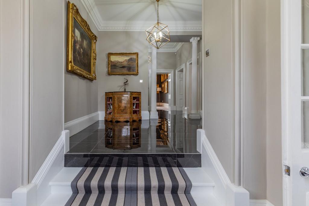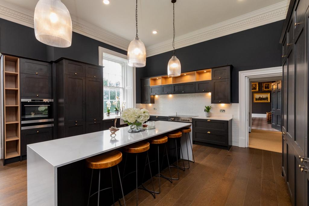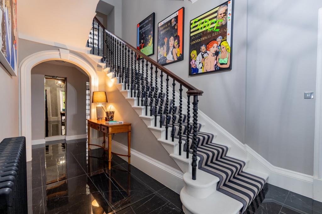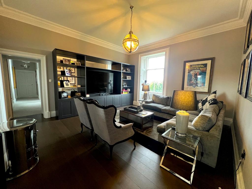 The first floor houses a spacious principal bedroom with en-suite bathroom, along with seven additional bedrooms each boasting unique features. The property also includes a TV room with custom media unit and an impressive Farrow & Ball color palette throughout.